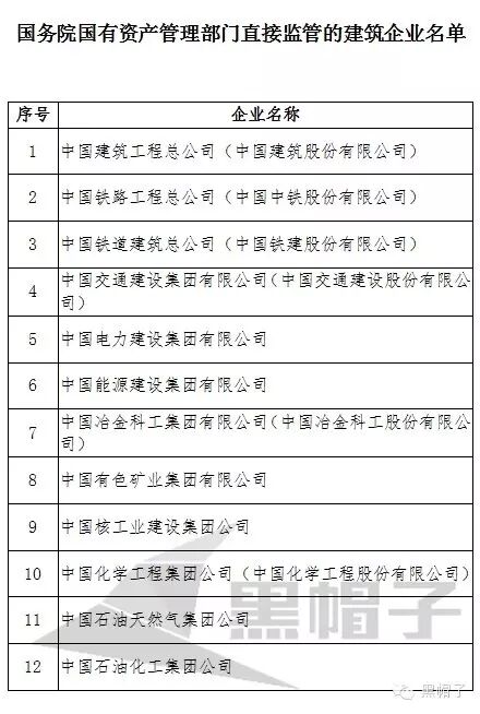 4-2.國務院國有資產管理部門直接監(jiān)管的建筑企業(yè)名單