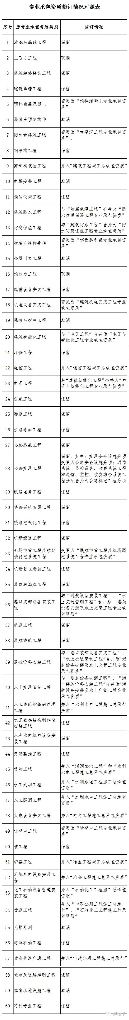 專業(yè)承包資質修訂情況對照表見附件4-3。