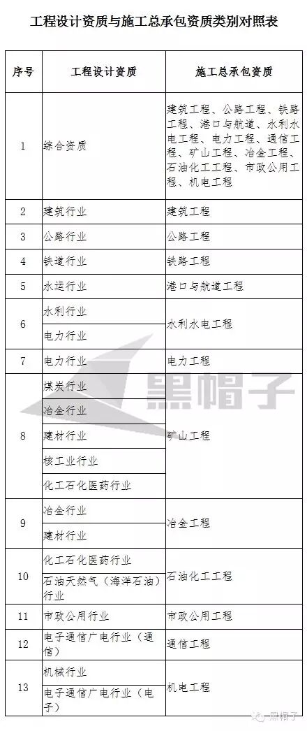 4-1.工程設計資質與施工總承包資質類別對照表