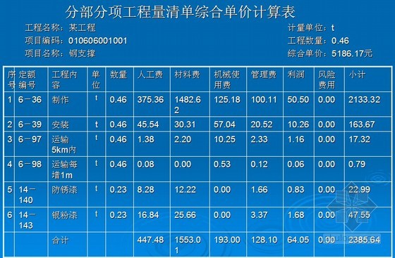 該鋼支撐的綜合單價(jià)為2385.64/0.46=5186.17元/t