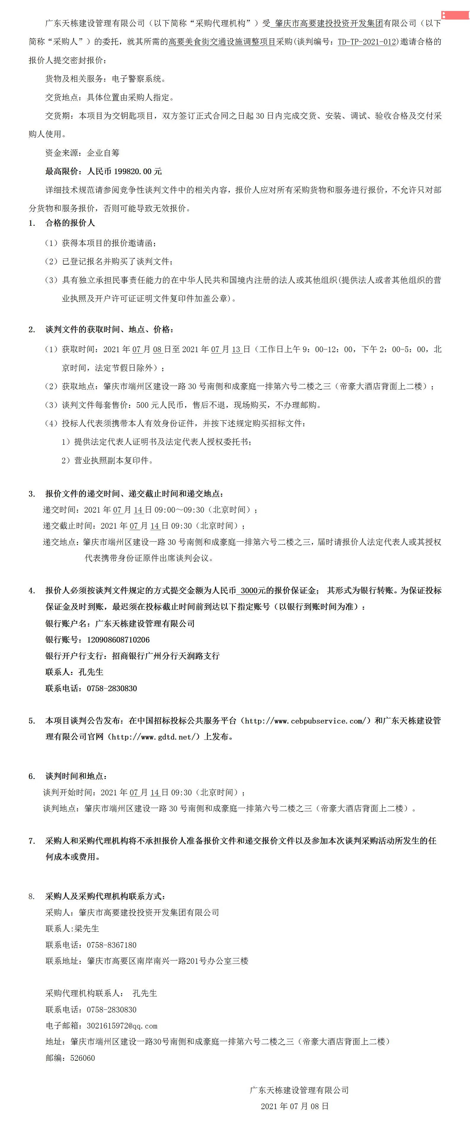 當(dāng)前位置:首頁(yè) ?>?招標(biāo)資訊?>?招標(biāo)公告高要美食街交通設(shè)施調(diào)整項(xiàng)目采購(gòu)及服務(wù)